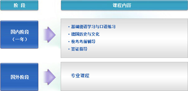 "中德1+2国际硕士"项目专为想要留学德国的大四在读生、本科毕业生设立,针对德国高等教育的特点,以德语特色教学为核心,德国文化教育、留学生活、基础财商、签证指导、职业规划等特色课程为辅助,使学生在规定的时间内达到预申请的德国大学录取标准。完成该项目课程的学生,语言成绩合格后,即可申请进入德国的大学就读。