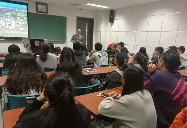 随后与同学们面对面的讲座也如期进行。Andrei就阿尔伯塔大学概况、专业选择、课程设置、学生服务、实习机会为大家做了详细介绍。作为世界高校的阿尔伯塔大学高要求并没有吓退我院的学生们。我院同学积极询问着各种赴加求学的问题。