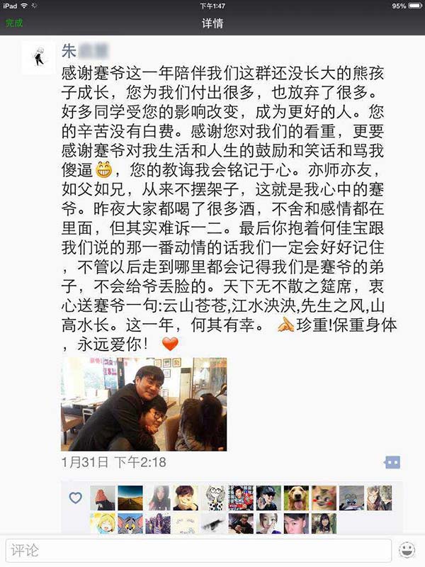 上海大学ACCA有着这样一群老师,他们不仅学术渊博,经验丰富,让学生在学术方面脱颖而出;而且充满活力,热情洋溢,亦师亦友,是学生在学习生活上的榜样,真正做到教书育人。比如ACCA讲师蹇老师,学生亲切的称为蹇爷,一个小小的称呼折射出学生对老师的喜爱,对老师的认可。好了,话不多说,看看搜集来的学生评价: