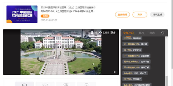 2020年突如其来的疫情给世界各国带来深远的影响,尤其是对国际教育和学生跨境流动产生极大冲击,为了向广大出国留学人员提供海外优质的教育资源,上海立信会计金融学院国际财经学院(以下简称“立信国际财经”)受邀参加由中留服举办的“2021中国国际教育巡回展(线上)”,通过网络直播平台在线宣讲,突出我院国际项目的优势,并且提供留学的专业建议。