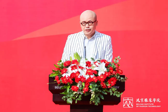 杰出校友、中国服装协会副会长,“例外”、“方所”品牌创始人毛继鸿先生饱含深情地讲述了求学奋斗历程,回顾了母校对其职业生涯的深远影响,为新生点亮心灯。他寄语新生们坚持创新与实践,将理论知识与实际操作结合;关注可持续发展,融合环保理念;培养国际视野,理解全球时尚趋势;保持对行业的热情与执着,勇敢迎接挑战;拥抱行业变化,推动时尚潮流。他鼓励同学们在北京服装学院这片沃土上勇敢追梦、努力奋斗,创造精彩与成就。