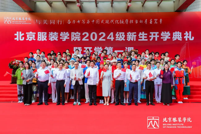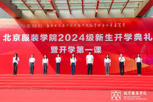 北京服装学院党委书记周志军,院长贾荣林,党委副书记姜孔桥、李伟书,党委常委、副院长詹炳宏、王峥,副院长邹游,党委常委、纪委书记李慧出席,89级校友毛继鸿及各二级学院、相关职能部门负责人、学生和家长代表共同见证了这一重要时刻。本次开学典礼暨开学第一课以“奋力书写为中国式现代化挺膺担当的青春篇章”为主题,通过丰富的讲述和生动的服装动态展演,将艺术、科技与思政完美融合,展现了北服人独特的精神风貌与时代担当。北京服装学院官方视频号同步现场直播。