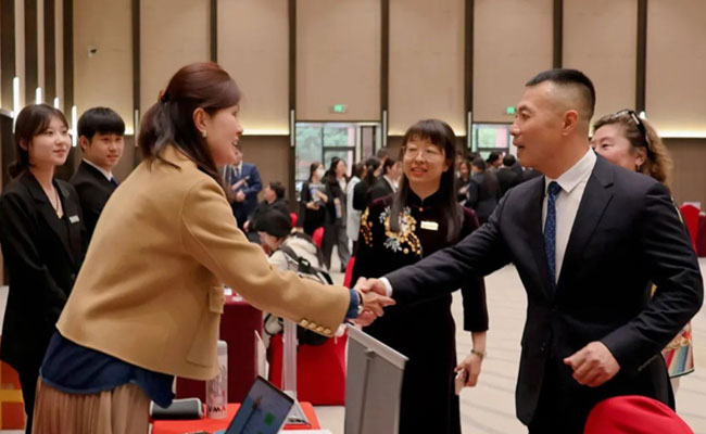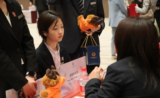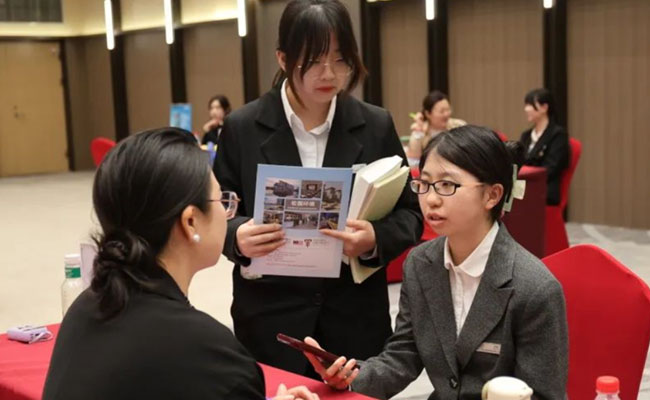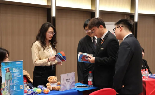 各参展院校代表对中瑞的国际化办学理念和人才培养模式给予了高度肯定与赞赏。参展院校代表们特别认可中瑞"理论与实践相结合"的人才培养模式,认为该模式成功培养了学生的实务能力和专业判断力。同时,中瑞学生表现出的跨文化交流意识尤为突出,不仅语言表达流畅,还能自如适应多元文化环境,展现出卓越的沟通能力与国际化视野。